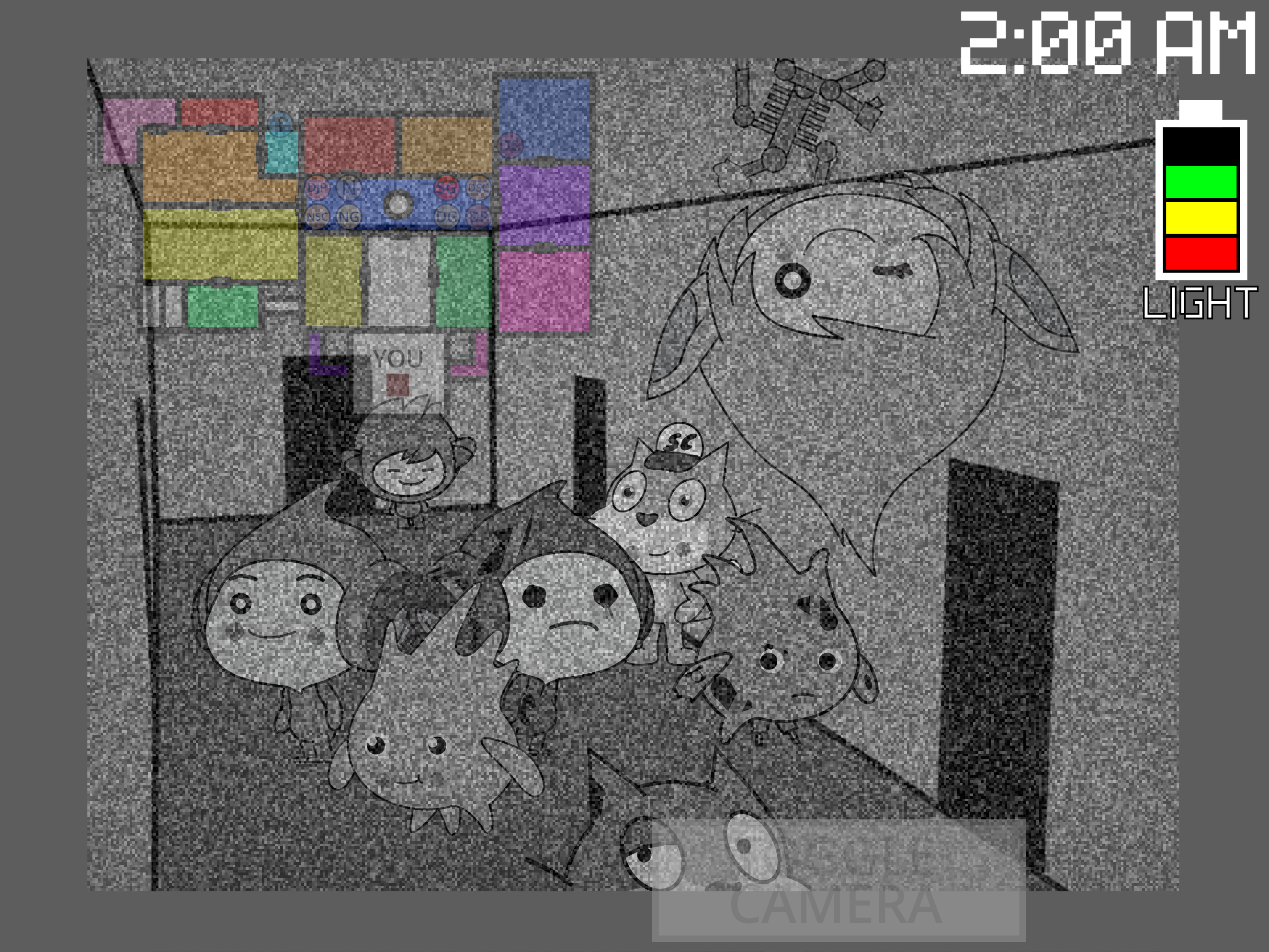 This game is a parody of Scott Cawthon's Five Nights at Freddy's 2. Though there is no grotesque imagery or backstory, there are still jumpscares if you happen to lose. If you are sensitive to flashing images and loud sounds, please refrain from playing this game.